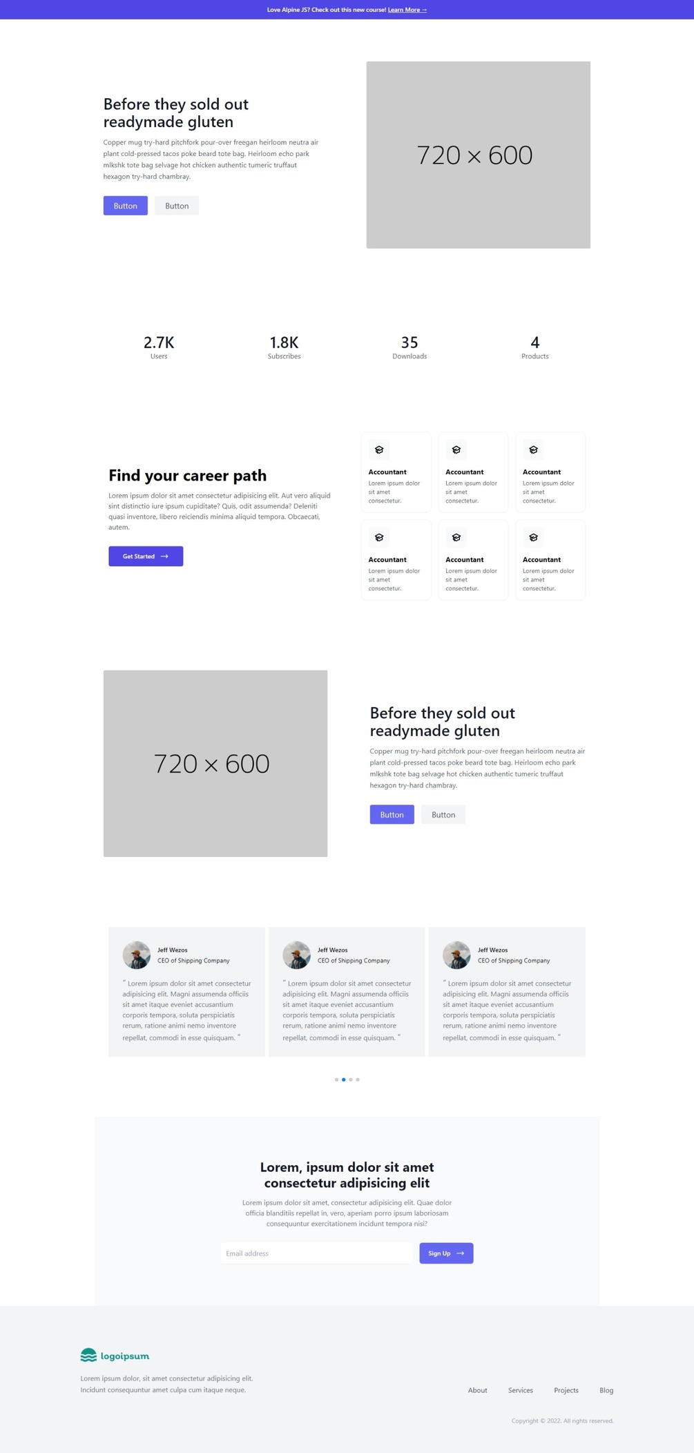 sample landing page html tailwind css $1+$1+https://schema.org/InStockusdaimenaimenMain Features:. Click to View Demo Responsive in Any Device Fast, Lightweight & Powerful Well Commented Code Easily Customizable Name a fair price:$I want this!Size9.93 KBAdd to wishlist New wishlistShareShare on XShare on Facebook Copy linkCopy product URL